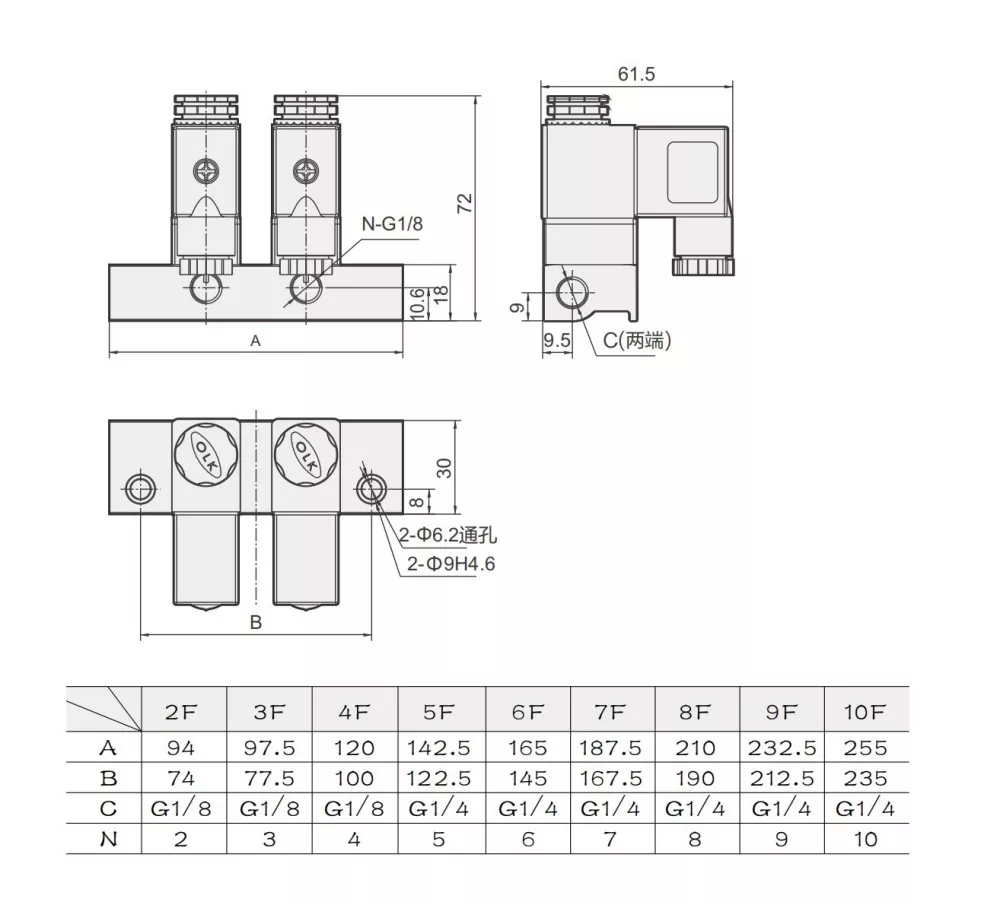 2V025 နှစ်ရပ်အနေအထား၊ နှစ်လမ်းသွားတိုက်ရိုက်-သရုပ်ဆောင်မှု ပုံမှန်အားဖြင့် ပိတ်ထားသော ဆိုလီနွိုက်အဆို့ရှင်သည် လျှောက်လွှာလိုအပ်ချက်အရ အဆို့ရှင်အခြေစိုက်စခန်းကို 2 မှ 12 ရာထူးအထိ လိုက်လျောညီထွေရှိသော တိုးချဲ့မှုဖြင့် ချိတ်ဆက်နိုင်သည်။ ဤ multi-station 2V025 Solenoid Valve Manifold သည် ကျစ်လစ်ပြီး ပေါ့ပါးသော ဒီဇိုင်းပါရှိသော်လည်း တစ်ဦးချင်းအသုံးပြုရန်အတွက် ဖြုတ်တပ်၍မရပါ။ အဆို့ရှင်ကိုယ်ထည်ကို အရည်အသွေးမြင့် အလူမီနီယမ်အလွိုင်းဖြင့် ပြုလုပ်ထားပြီး NBR တံဆိပ်ခတ်ထားသော ပစ္စည်းကို အသုံးပြုထားသည်။