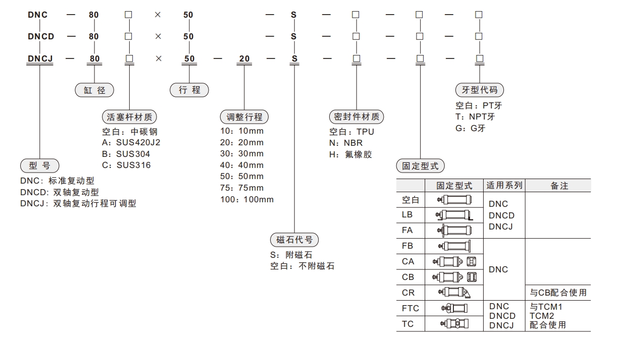 DNC စီးရီး Pneumatic ဆလင်ဒါသည် Festo DNC cylinders နှင့် Airtac se cylinders များအတွက်တိုက်ရိုက်အစားထိုးခြင်း,