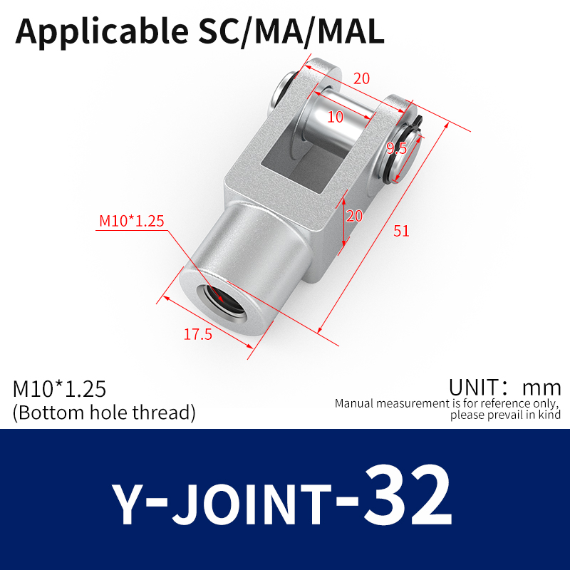 PNEUMATIC 32mm Bore 25mm Stroke Air Cylinder Double Action with Y Connector နှင့် 2 Pcs 6mm PC Fitting MAL32x25