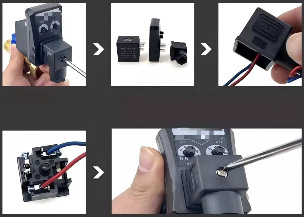 OLK OPT-A Electronic Timer Auto Drain ခွဲထုတ်ဖွဲ့စည်းပုံသည် ကျဉ်းမြောင်းသော တပ်ဆင်နေရာများအတွက် သင့်လျော်ပြီး လိုက်လျောညီထွေရှိသော တပ်ဆင်ခြင်း ဦးတည်ချက်ကို ပေးဆောင်ပါသည်။ အလယ်တွင် threaded အပိုင်းသည် valve body သို့ ချိတ်ဆက်မှု port ဖြစ်သည်။ valve body ၏ ပိုရှည်သောအပိုင်းမှာ inlet port ဖြစ်ပြီး ပိုတိုချောသော side သည် drain outlet ဖြစ်သည်။အဆို့ရှင်သည် လျှပ်စစ်ထိန်းချုပ်မှု + manual override ကို ပံ့ပိုးပေးပါသည်။ manual အပိတ်ပါဝါချို့ယွင်းမှုကို နှစ်ဆကာကွယ်ပေးပါသည်။ ပြင်ပမှ ပါဝါပိတ်ခြင်းကို ကာကွယ်ပေးပါသည်။