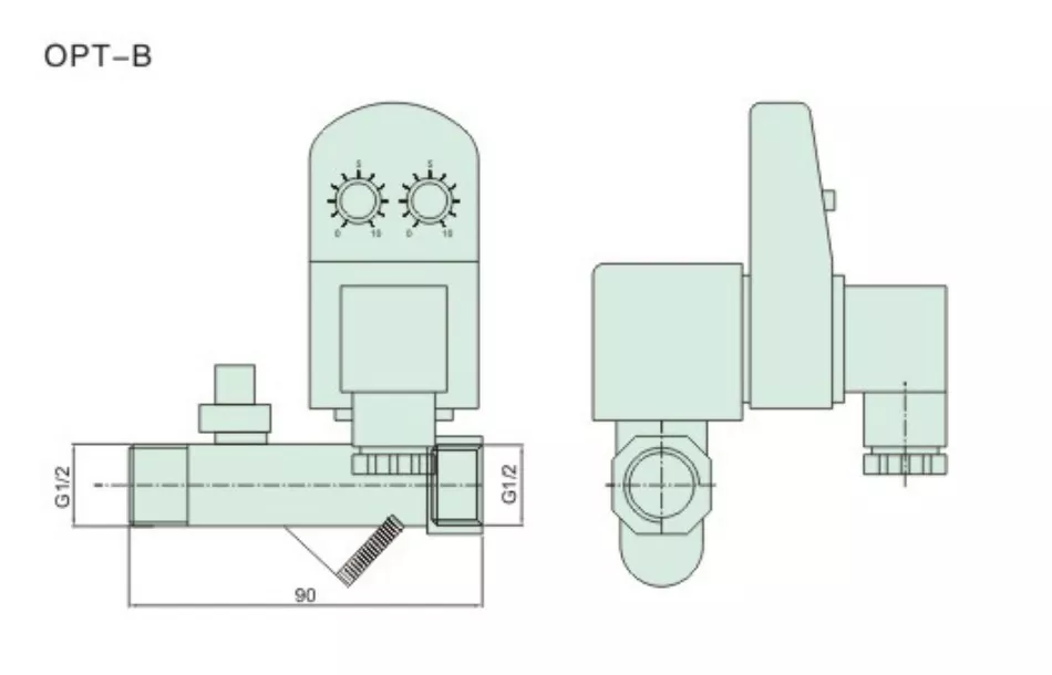 OLK OPT-B Electronic Timer Auto Drain သည် လျှပ်စစ်ထိန်းချုပ်မှုနှင့် Manual Shutoff နှစ်ခုလုံးကို အကာအကွယ်အဖြစ် ပံ့ပိုးပေးပါသည်။ ပါဝါချို့ယွင်းနေစဉ်အတွင်း စီးဆင်းမှုကို ကာကွယ်ရန် ပြင်ပလက်စွဲပိတ်ခလုတ်ကို အဆို့ရှင်ကိုယ်ပေါ်တွင် သိမ်းဆည်းထားသည်။ အဝင်ပေါက်သည် ကွိုင်နှင့်အကွာအဝေးတွင် တည်ရှိပြီး ချည်မျှင်များမပါသော အလယ်ပေါက်သည် ရေထွက်ပေါက်ဖြစ်ပြီး နောက်ဆုံးပေါက်သည် ထွက်ပေါက်ဖြစ်သည်။