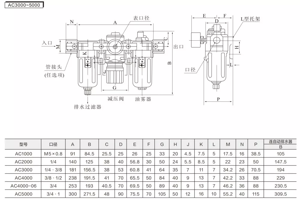 AC2000-5000:0.05-0.085 Mpa(0.51-8.7 kgf/cm³)