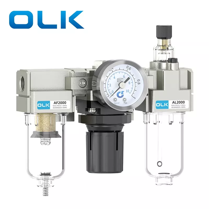 SMC အမျိုးအစား AC FRL ယူနစ် (Filter-Regulator-Lubricator) သည် လေအရင်းအမြစ် filtration၊ ဖိအားလျှော့ချရေးနှင့် ထိန်းညှိမှုနှင့် ချောဆီကုသမှုတို့ကို ပေါင်းစပ်ထားသည့် pneumatic အခြေခံအစိတ်အပိုင်းတစ်ခုဖြစ်သည်။ ၎င်းသည် pneumatic စနစ်များအတွက် သန့်ရှင်းသော၊ တည်ငြိမ်ပြီး ချောဆီချုံ့ထားသောလေကို ထောက်ပံ့ပေးပြီး နယူးမက်စ်အစိတ်အပိုင်းများ၏ သက်တမ်းကို တိုးမြှင့်ကာ စနစ်တည်ငြိမ်မှုကို မြှင့်တင်ပေးပါသည်။ OLK AC Series FRL Unit သည် ခေတ်မီနယူးနစ်စနစ်များ၏ မရှိမဖြစ် "အုပ်ထိန်းသူ" အဖြစ် ဆောင်ရွက်ပါသည်။